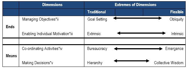 - Loosen the 'means' *i of management but tighten the control of the 'ends' *ii (managing objectives & enabling individual motivation), ie tell employers 'what' to do but not 'how' to do it. - Organisations aiming to re-juvenate themselves |