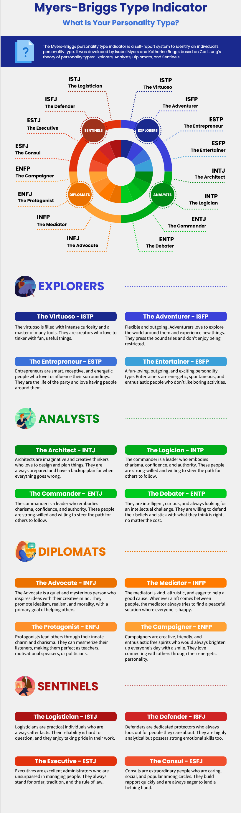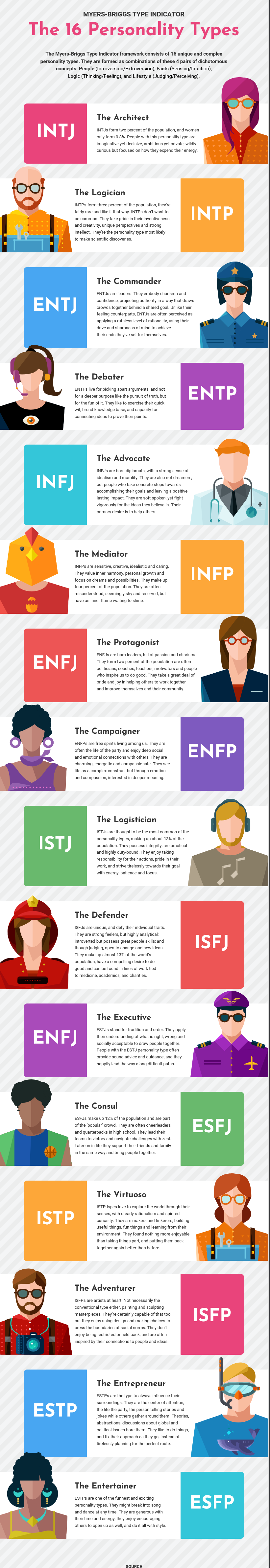 . Remember: the 16 MBTI types are not static. Instead they describe dynamic energy systems with interacting processes based on extraversion/introversion, sensing/intuition, thinking/feeling, and judging/preceding. Furthermore, it is the combination of the 4 preferences that provides the best picture of each type