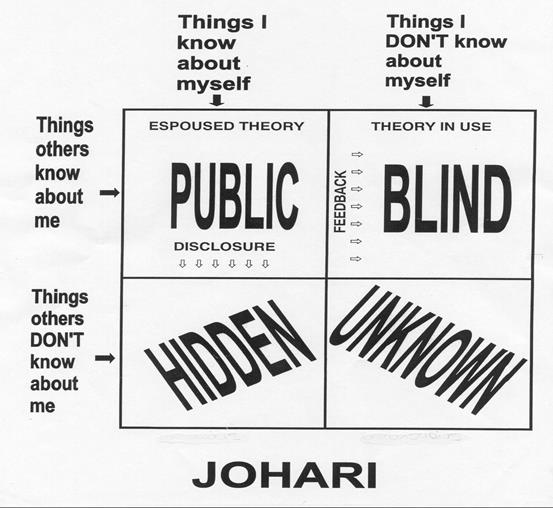 . The theory behind the model says that it is difficult to develop and maintain relationships unless we disclose information about ourselves, and solicit and accept feedback from others.