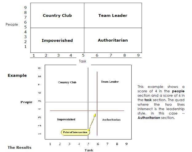 3. The total score for the first column (people) is plotted on vertical axis in the matrix section, while the total score for the second column (Task) is plotted on the horizontal axis. See the example on page 5. Finally, have the persons intersect the lines to see in what leadership dimension they normally operate out of: