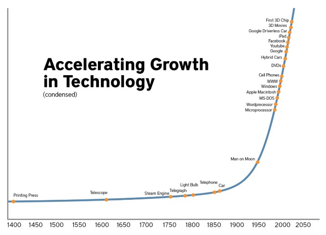 The graph below shows the exponential rate of technology