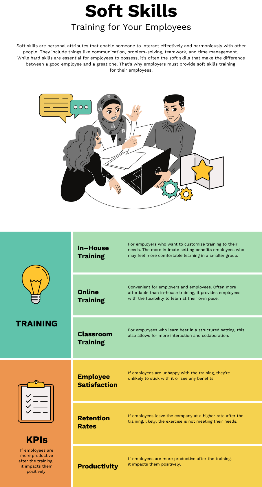 A balance of technical expertise and soft skills is required in the collaborative workplace; soft skills can be developed and include communication, teamwork, creativity, adaptability, problem-solving, work ethic, critical thinking, conflict management, emotional intelligence, leadership, time management, etc.