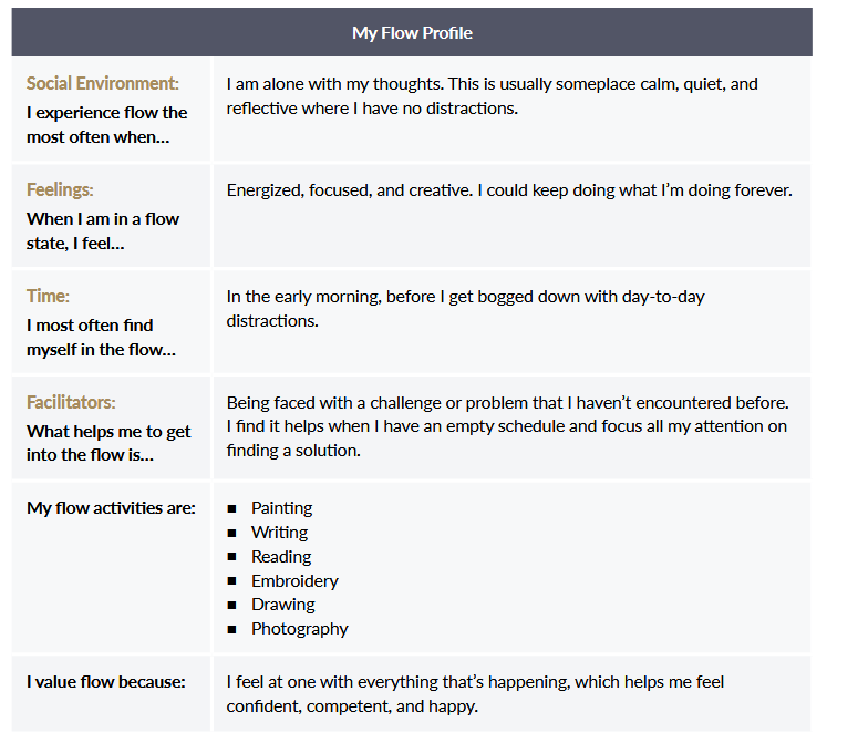 Most people are unaware of what can lead them into a flow state. As a result, you need to develop your own flow profile that is