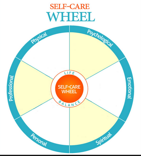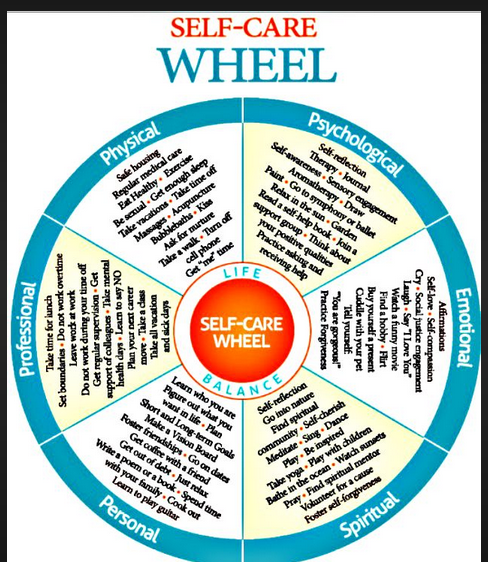 The below diagram explains the elements of self-care: psychological, emotional, spiritual, personal, professional and physical.