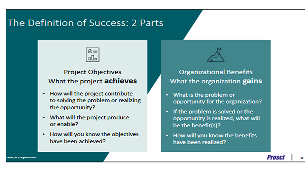 During change initiatives, people and their roles are changing from their current state to transitional and then future states. This needs to be communicated effectively to all impacted stakeholders. Everyone needs to consider their role in achieving the expected outcomes, etc; if this doesn't happen effectively, it can lead to resistance and reduce the chance of a successful change outcome.