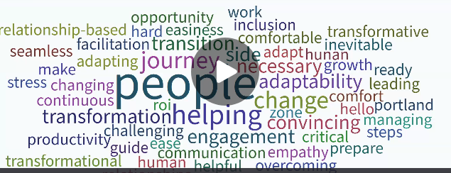 NB Attendees at a webinar (early 2024) were asked to use one word to describe change management; people was the dominant word used to describe change management: